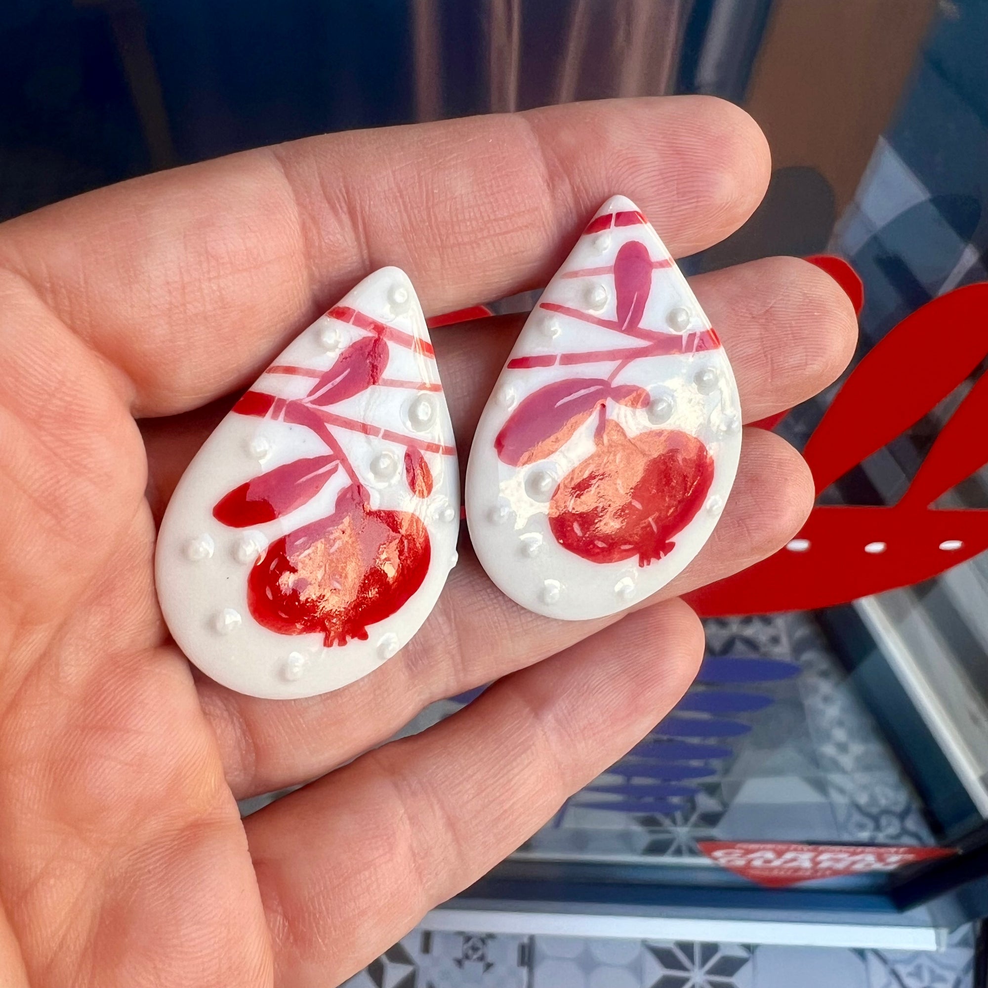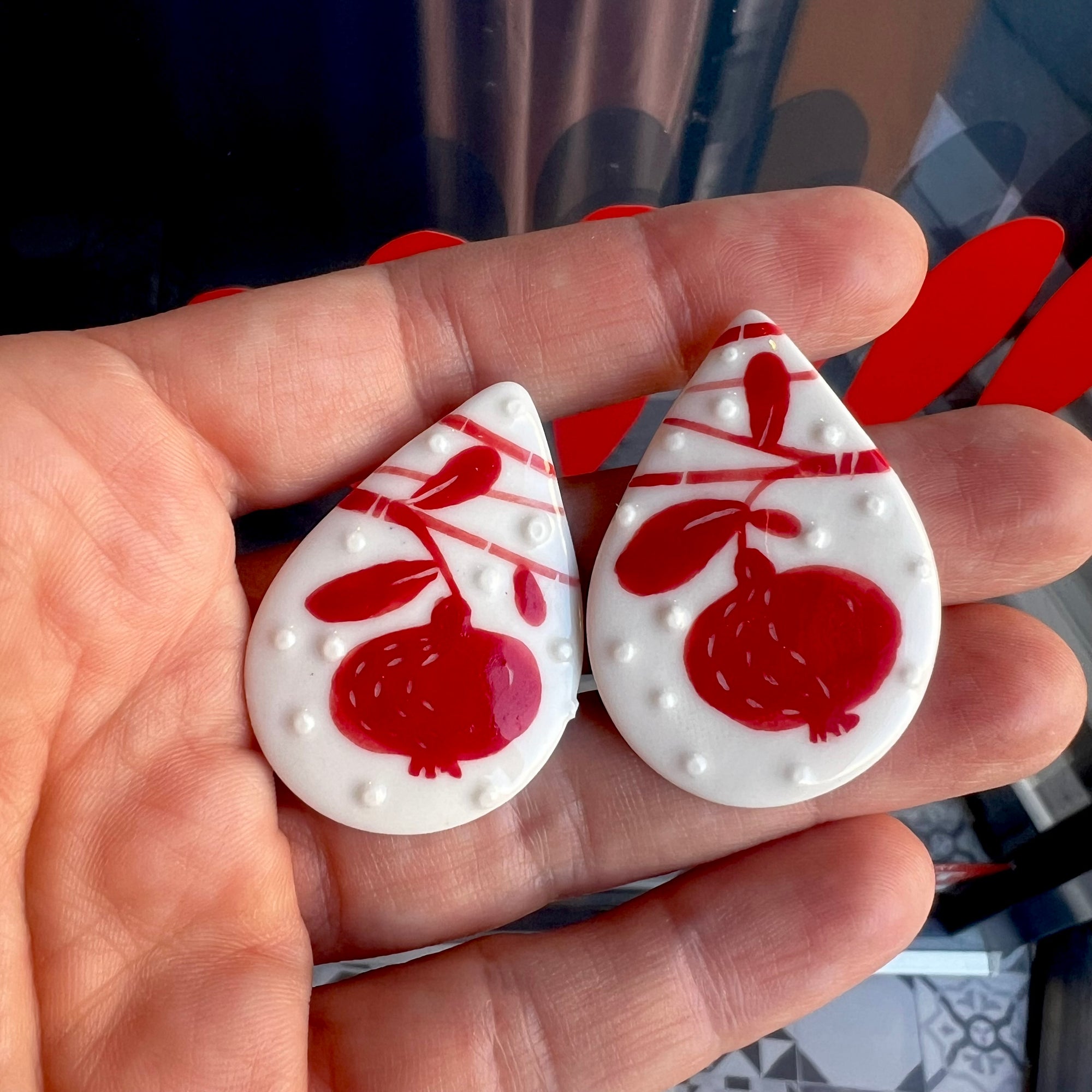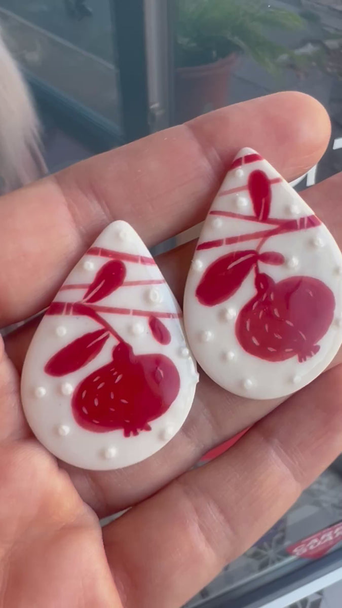 Cercei din portelan lucrati manual, pictati