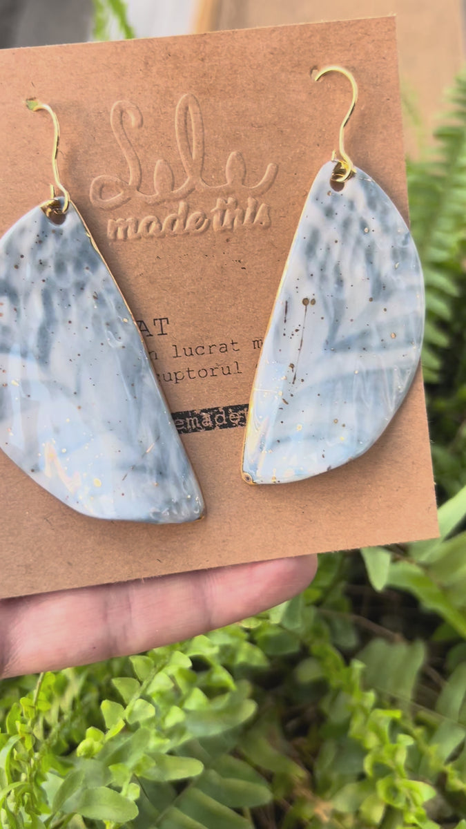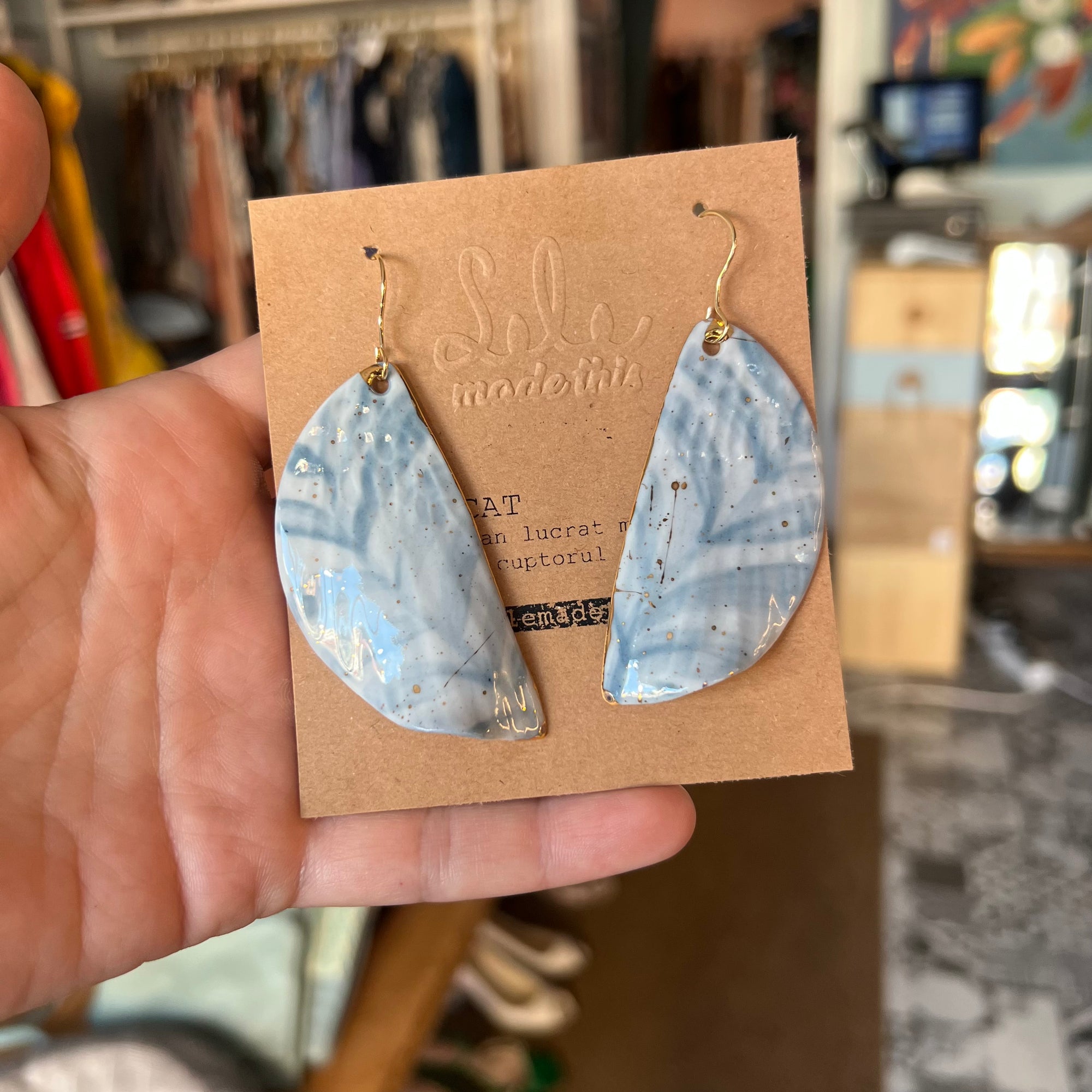 Cercei aripi, din portelan, pictati pe ambele fete, cu accente de aur coloidal