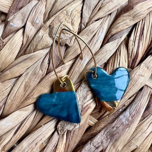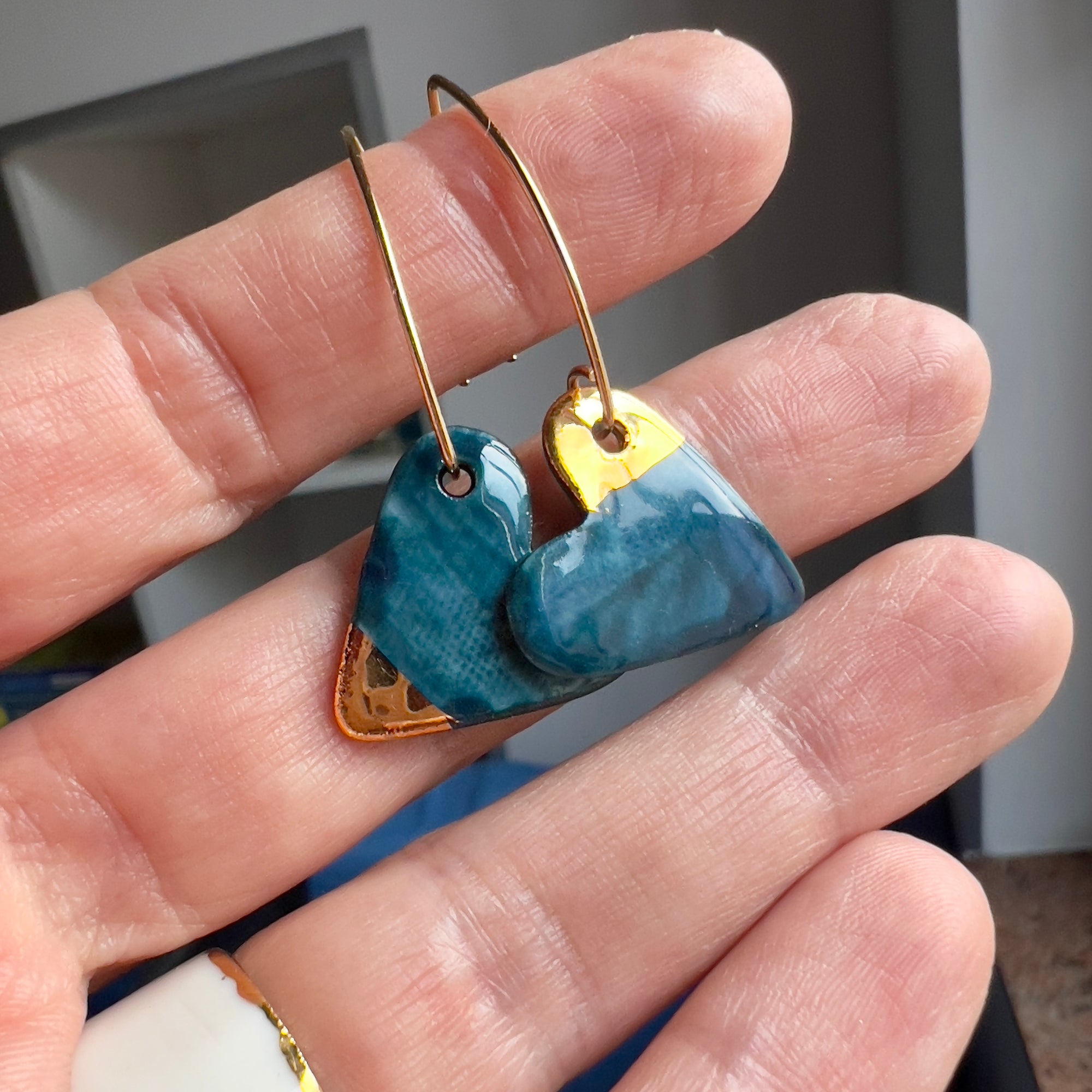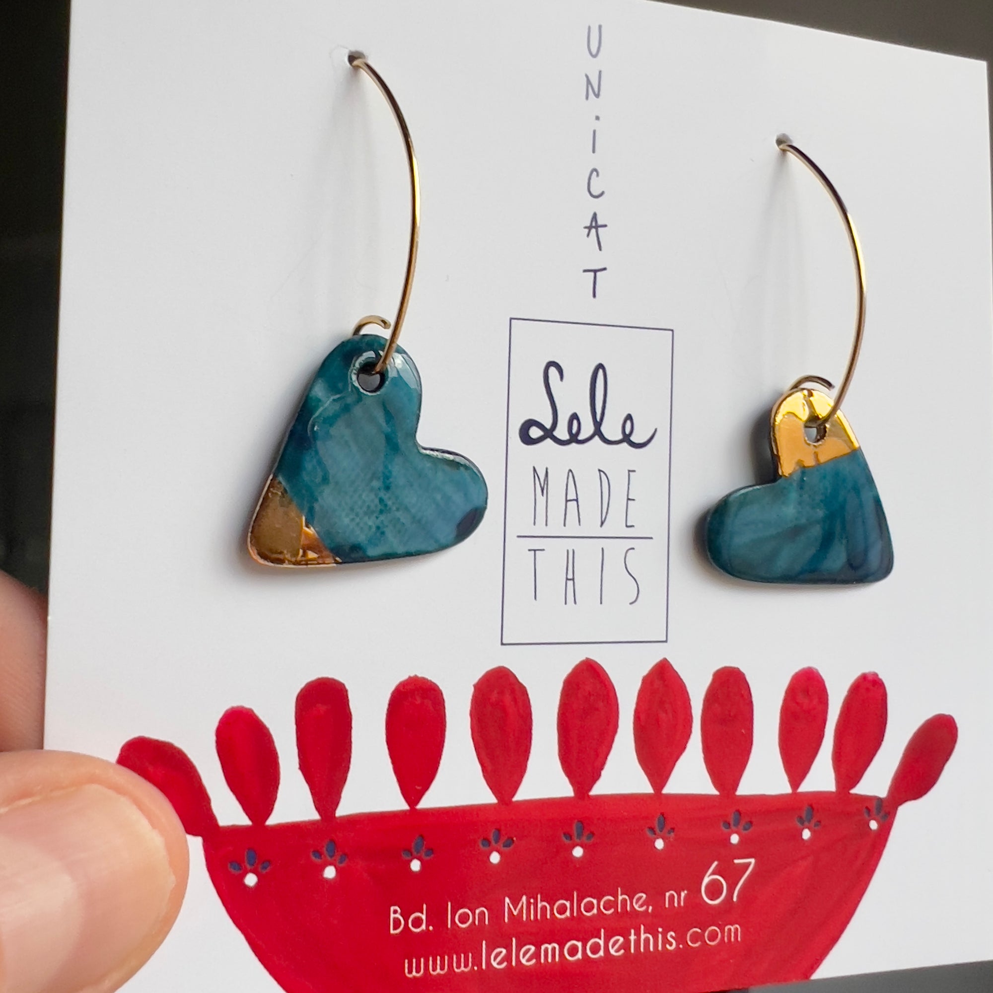 Cercei din portelan lucrati si pictati manual, pe ambele parti, cu accente de aur coloidal